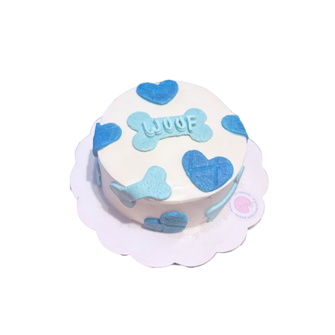 Pastel en forma de redondo, natural y personalizado, para perritos. Colores y dedicatoria personalizado.