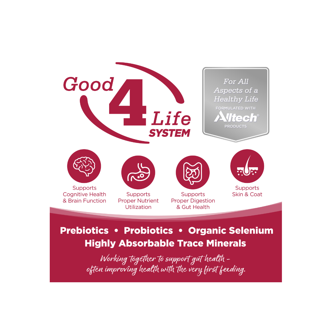 La fórmula sin granos de NutriSource brinda una nutrición compacta e incluye prebióticos y probióticos para ayudar a mantener un intestino saludable.