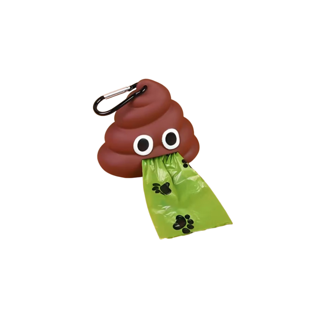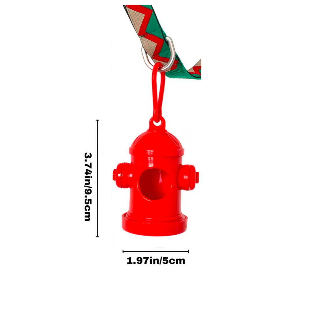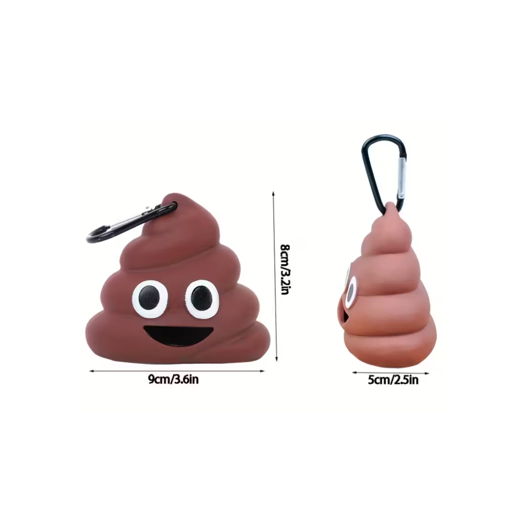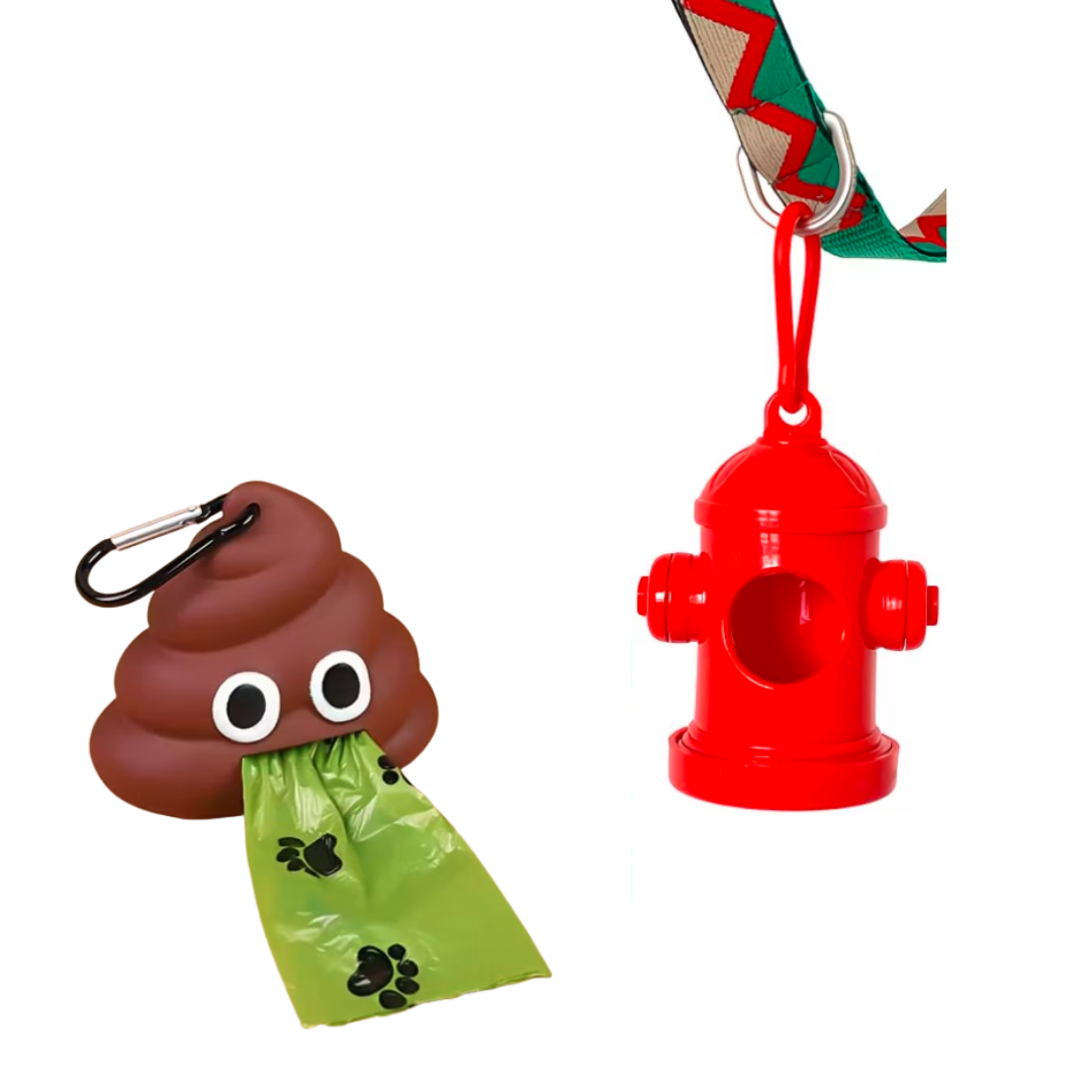 Porta bolsas para desechos en forma de emoticon de 💩 o hidrante rojo. Perfecto para identificar muy bien el dispensador de bolsas de tu peludo de una forma unica y divertida.